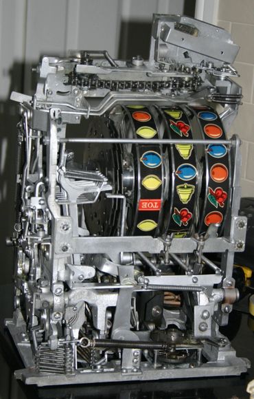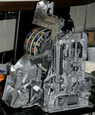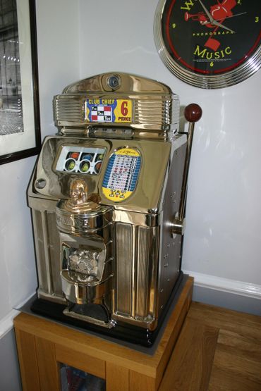 Most slot machine collectors want at least one Jennings machine in their collection, the latest ones (club Chief) are said to be THE classic mechanical slot machine. Always well made with great build quality and designed to stand the test of time. Variations on this model were also made, plastic side panels which lit up , light up top section etc, All had the iconic indian head to "rub" for luck. widely used in Vegas casinos for their reliability, Mainly as all the mechanical components are fixed to the main mechanism so easy to work on as opposed to other machines which left half the workings in the machine when the mech was removed. This one has been stripped to its component form and completely rebuilt, cabinet recovered and front nickel plated. Valued at today's prices of approx £5000 and going up!